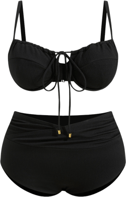 The black high-waisted bikini set is not just a swimsuit; it’s a sartorial staple that exudes elegance and timelessness. The color black naturally adds a touch of sophistication, making it a versatile...