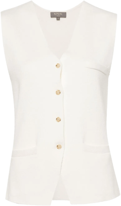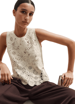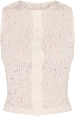 A cream sleeveless cotton vest embodies versatility. Its neutral shade seamlessly integrates into any wardrobe, providing a foundational piece that complements multiple outfits. The fabric’s breathabl...