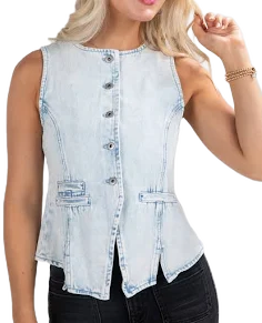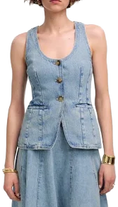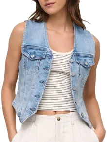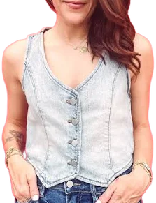 Denim vests are back, and they're better than ever. This light wash denim vest set is a testament to the perennial appeal of denim. This ensemble is not just a nod to the classic, rugged Americana loo...