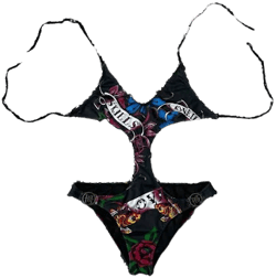 The floral Ed Hardy print on this swimsuit isn't just an aesthetic choice; it's a statement. Florals have long been synonymous with freshness and vibrancy, adding a touch of nature’s exquisite palette...