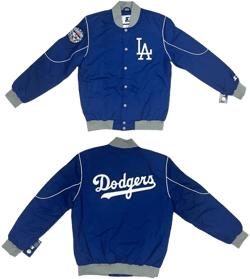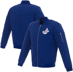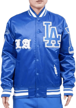 The blue LA Dodgers bomber jacket is a classic statement piece. It effortlessly merges sports flair with high-end fashion, making it a must-have for any wardrobe. The iconic Dodgers logo not only show...