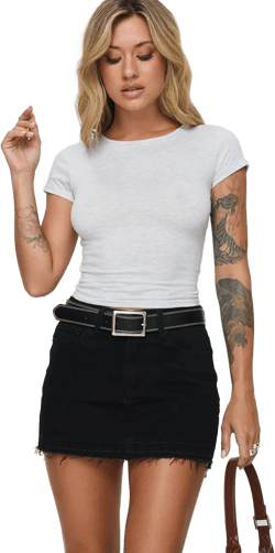 The black denim mini skirt. Versatile, sturdy, and undeniably chic. It's the first step in the 'mini skirt, no knickers' adventure. Why black, you ask? Simply put, black is a classic. It slims and fla...