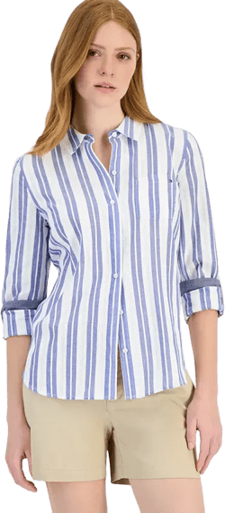 The striped cotton preppy shirt is a timeless wardrobe staple that seamlessly blends comfort and refinement. Stripes, especially in a vertical format, are universally flattering, elongating the torso ...